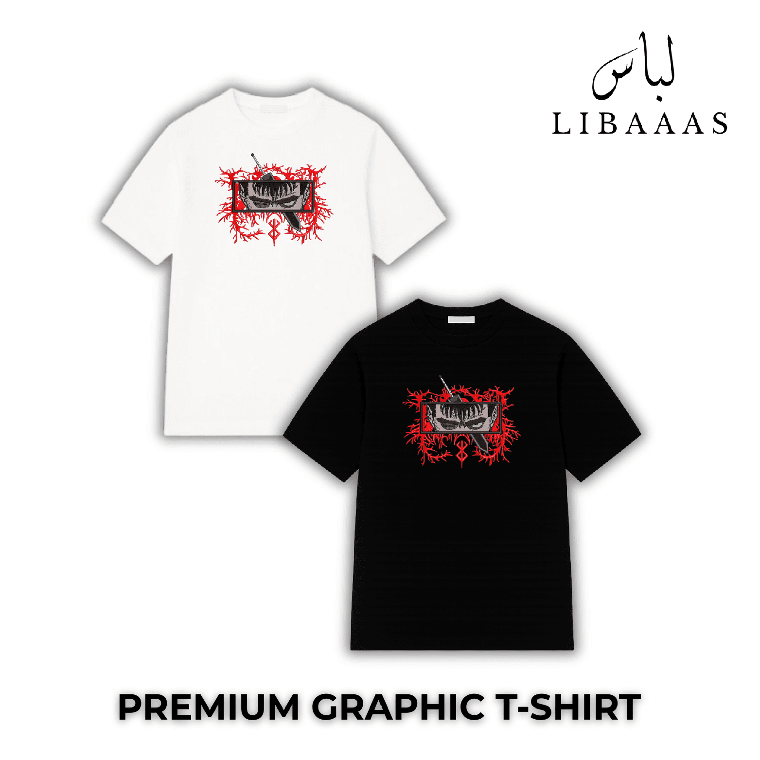 Embark onto the terrain of Berserk with the Berserk Guts Graphic Basic T-Shirt from LIBAAAS — an ode to the one and only Black Swordsman. Designed for lovers of anime, manga, and streetwear fans alike, this tee marries striking graphics and super-soft comfort.