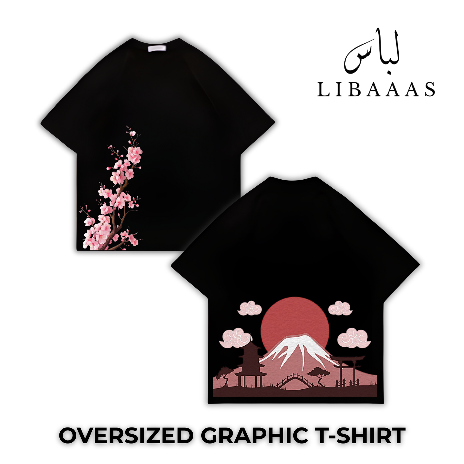 FUJI BLOOM OVERSIZED T-SHIRT from LIBAAAS is a creation that combines cultural art forms with modern streetwear. It is representative of the peace that enshrouds Mount Fuji and the grace of the Sakura blossoms, and captures the poetic essence of Japan: calm, powerful, and timeless.