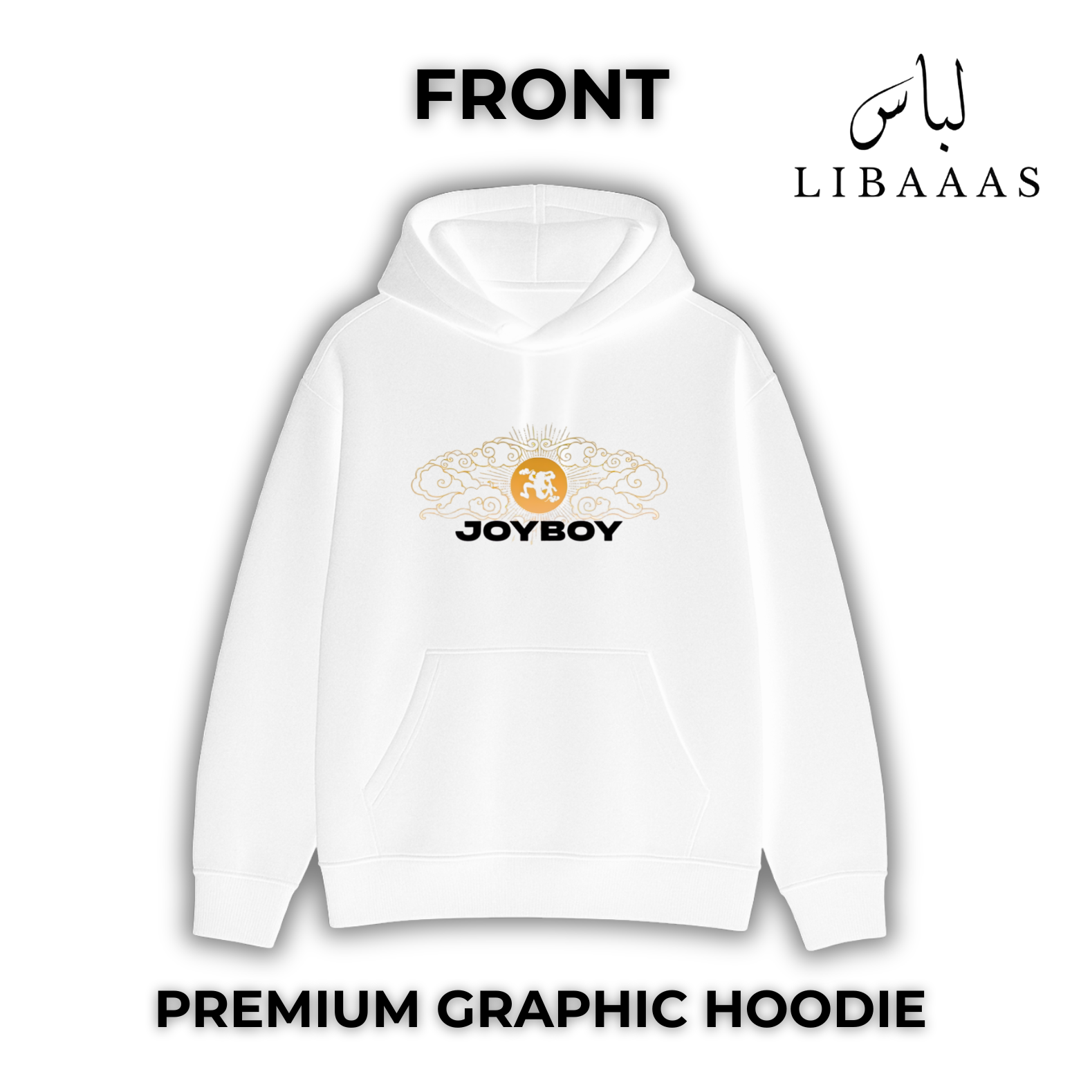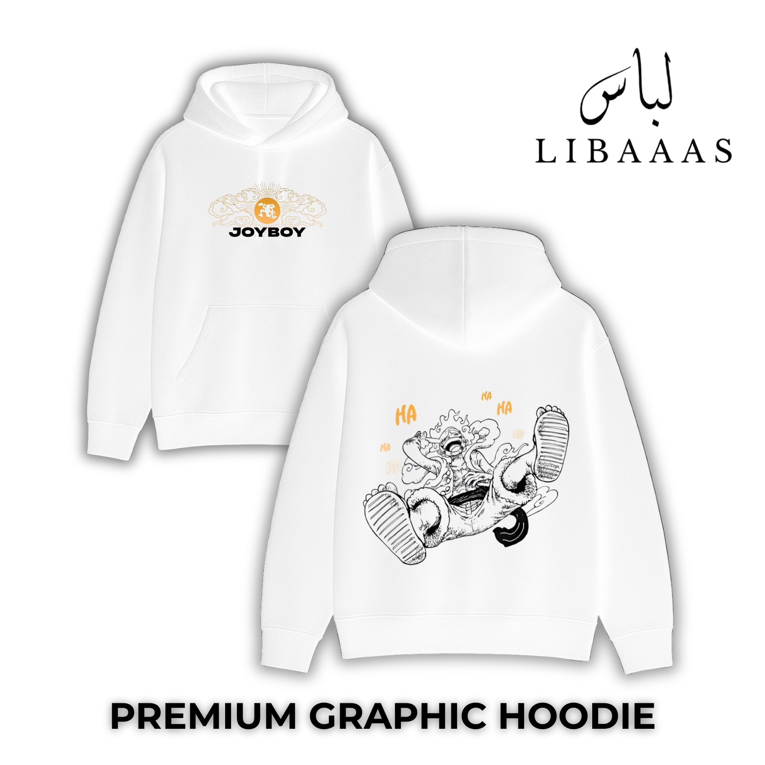 Made from 320 GSM fabric, very premium, this hoodie is super comfortable, warm, and very durable, apart from being clean and upliftingly streetwear. A minimal but very meaningful front-on JOYBOY emblem in the golden tone radiates hope and legacy. The back displays the free-spirited, very lively, and humorous character of the illustration that is very playful, synonymous with pure iconic energy capturing the hearts of millions. Every line in this design speaks of adventure, passion, and unchained spirit power.
